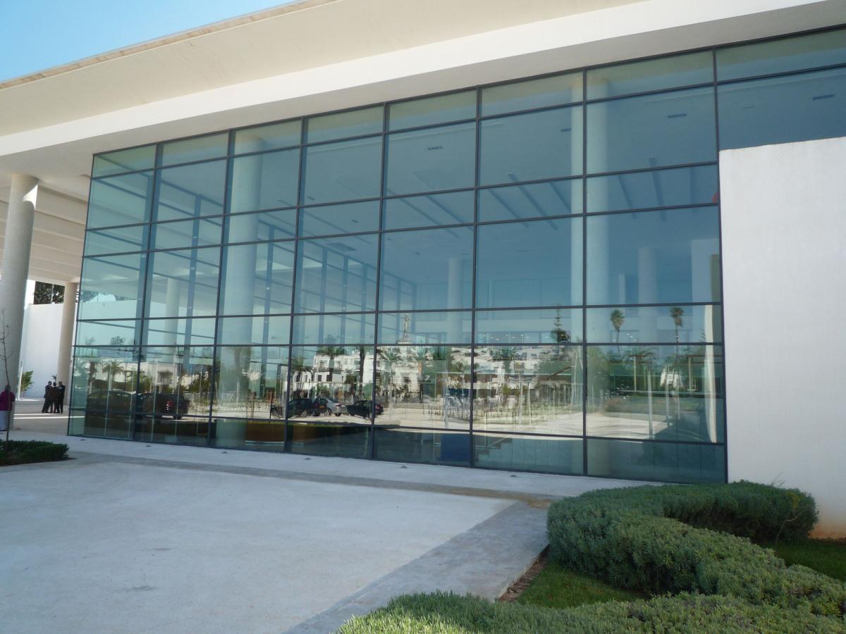 Murs rideaux : façades constituées de panneaux vitrés montés sur ossature aluminium indépendante.